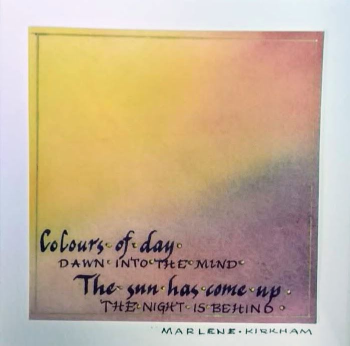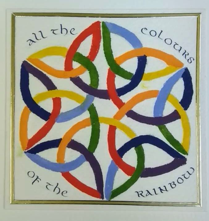 The brief was to produce a small page of calligraphy (size 9cm/9cm) to be included in a concertina book that members could borrow in the future for ideas and inspiration. The title for the project was ‘Colour’ and members were invited to interpret it in any way they wished; using any calligraphic style, illustration, text and medium. The resulting images are in the gallery below.