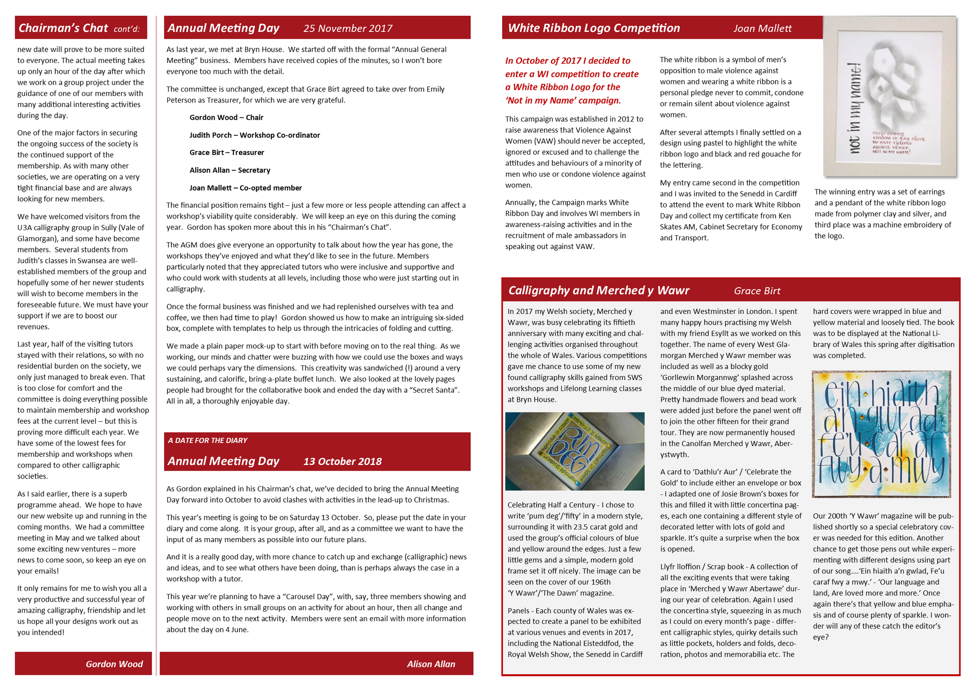 Nid ydy Ysgrifwyr De Cymru’n gwneud elw ac mae’n gysylltiedig â’r Calligraphy and Lettering Arts Society www.clas.co.uk