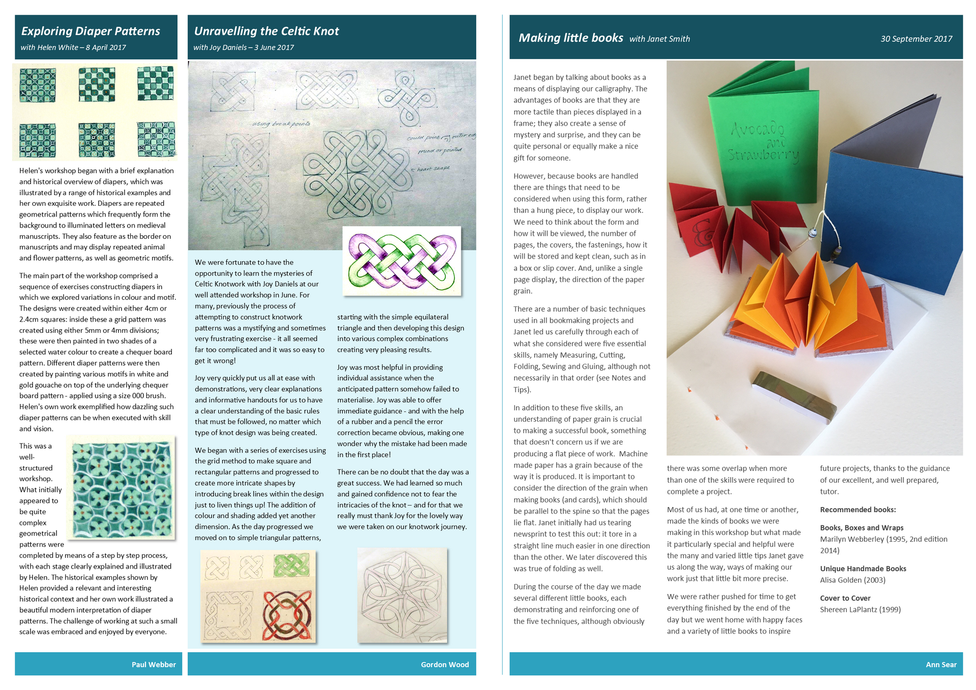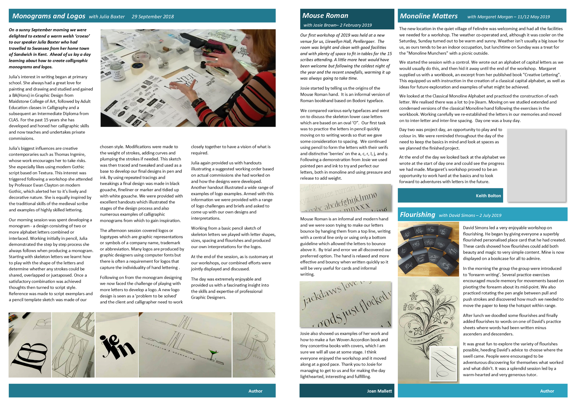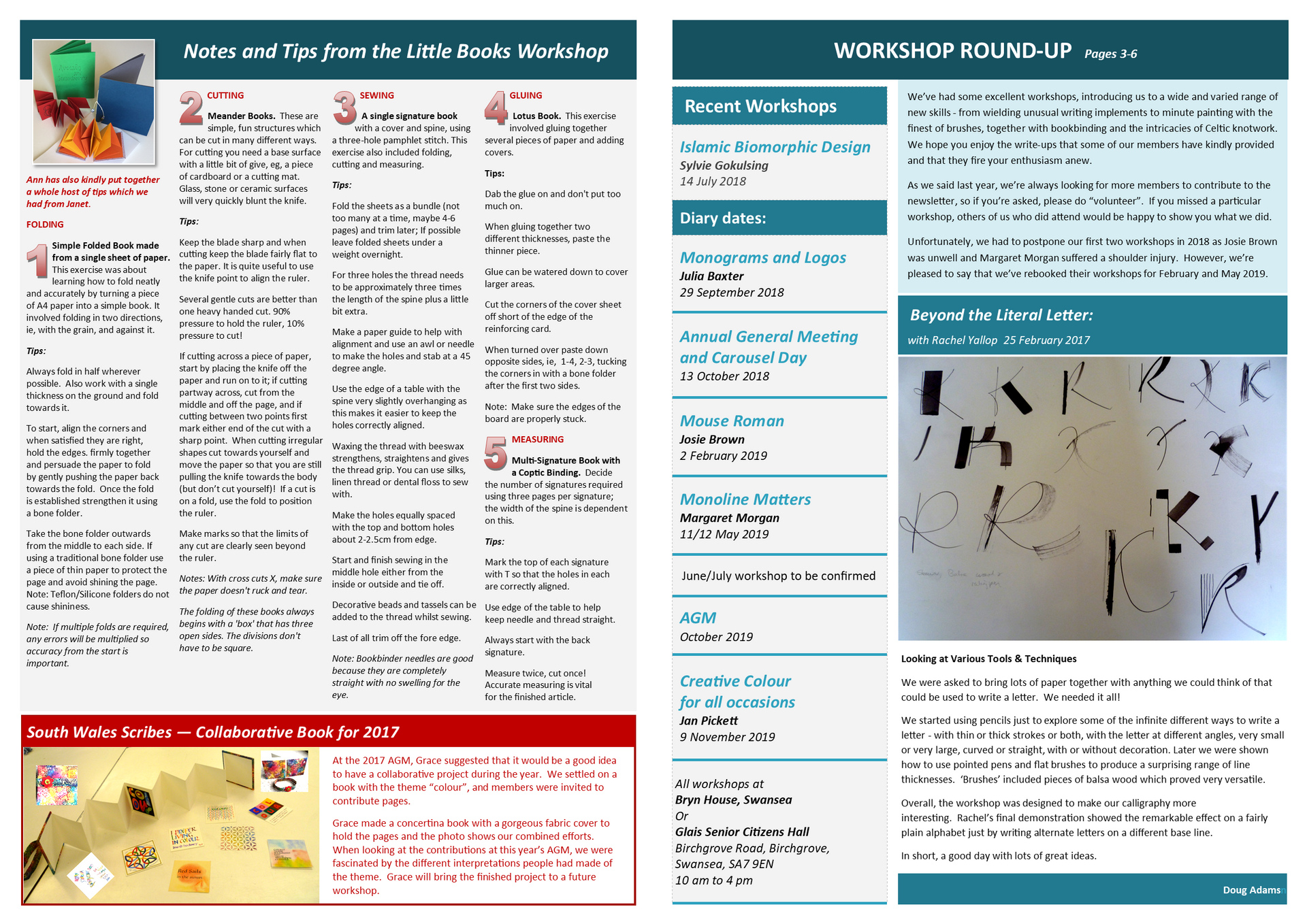 Membership is currently £15 per year. Workshop costs can vary but are around £35 for the day. For more information, please contact the secretary@southwalesscribes.co.uk / swscribes1@gmail.com.