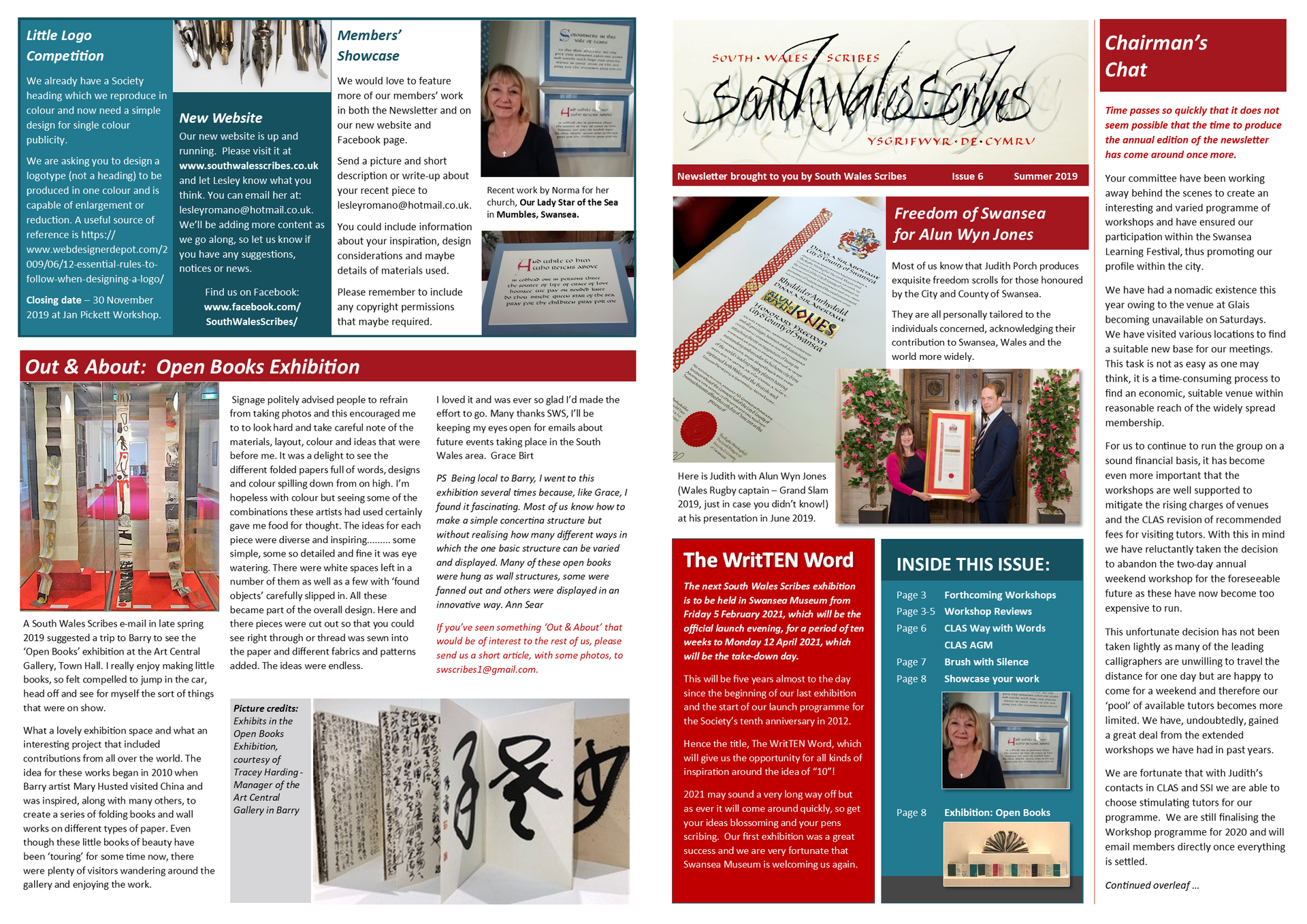 South Wales Scribes is a non-profit making organisation and is affiliated to the Calligraphy and Lettering Arts Society. www.clas.co.uk